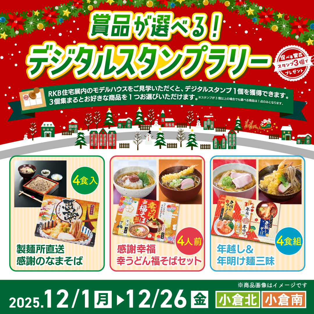 RKB住宅展内のモデルハウスをご見学いただきデジタルスタンプを集めると、お好きな麺商品をプレゼントいたします♪
