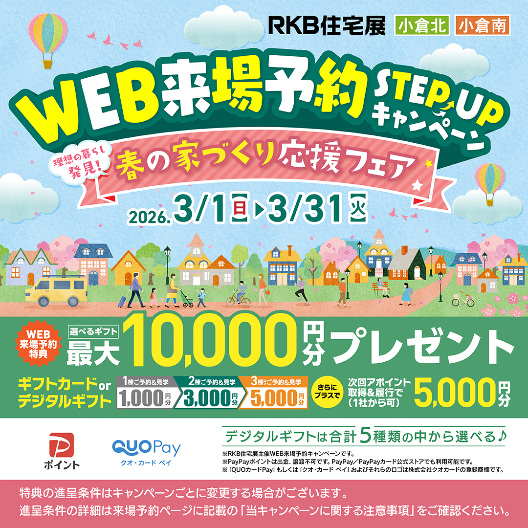 RKB住宅展では、3/7(土) ・8(日)・14(土)・15(日)の期間、『春の家づくり応援フェア』を実施します。